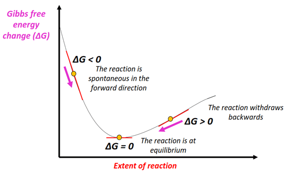 - At equilibrium, the forward and reverse reaction rates are equal, and the system’s free energy is minimized.