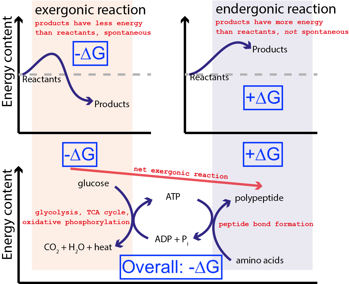 - Coupling allows an endergonic (unfavorable) process to proceed by using the energy released from an exergonic process.