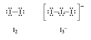 \( I_3^- \) is an ion while \( I_2 \) is a nonpolar molecule. \( I_3^- \) can form ion-dipole interactions with water molecules, where the charged ion attracts the partial charges on water molecules. \( I_2 \) can only form weaker London dispersion forces with water. ✅ Answer: Ion-dipole interactions Ion-dipole interactions