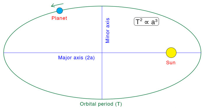 The square of the orbital period of a planet is directly proportional to the cube of the radius of its orbit around the Sun (or any central mass).