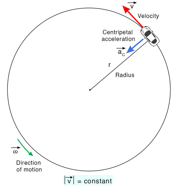 Centripetal Acceleration (\( a_c \)): Acceleration directed toward the center of the circle, responsible for changing velocity direction.