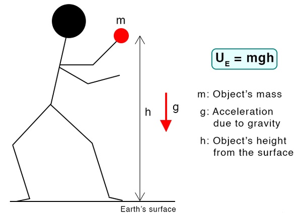 - Equation: \( \Delta U_g = m g \Delta h \)