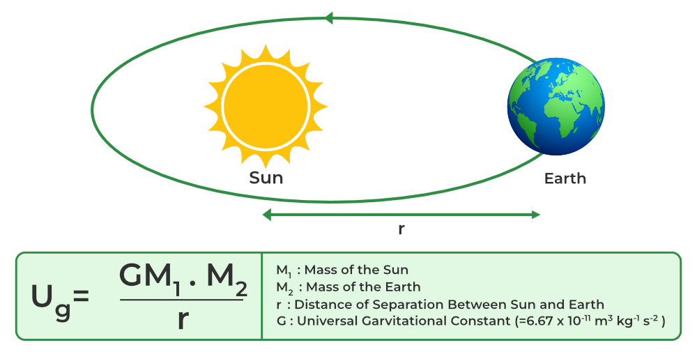 Equation: \( U_g = – \dfrac{G m_1 m_2}{r} \)