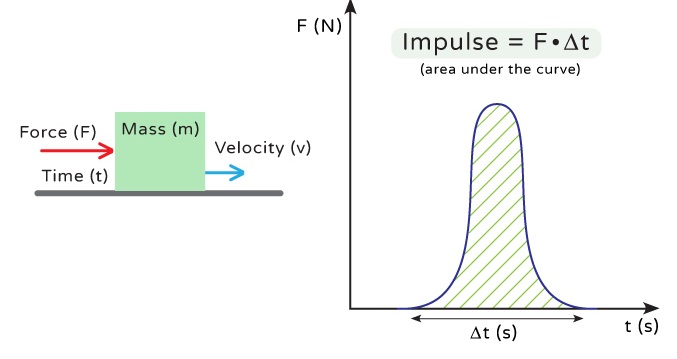 Impulse (\( \vec{J} \)) is the product of the average force applied to an object and the time interval over which it acts: