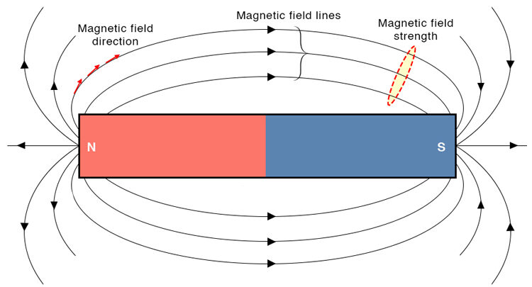 - Magnetic field lines form closed continuous loops (from north pole to south pole outside a magnet, and from south to north inside).