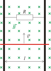 - The rod is pulled with velocity \(\vec{v}\) perpendicular to its length.