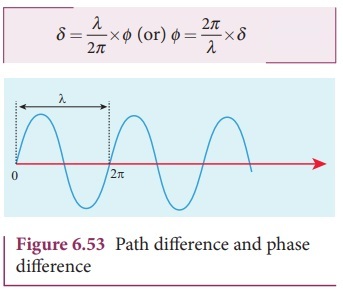 Path difference is the physical distance between two wavefronts or the difference in distance traveled by two waves, measured in units of length like meters. Phase difference is the angular separation between the oscillations of two waves at a given point, measured in radians or degrees.