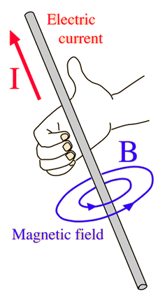 - The curl of your fingers shows the circular direction of the magnetic field lines around the wire.
