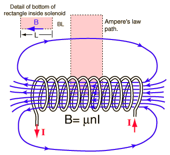 Inside a solenoid with \(n\) turns per unit length carrying current \(I\):