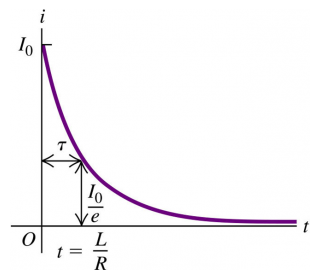 - After a time \(t = \tau\), current decreases to about 37% of its initial value.