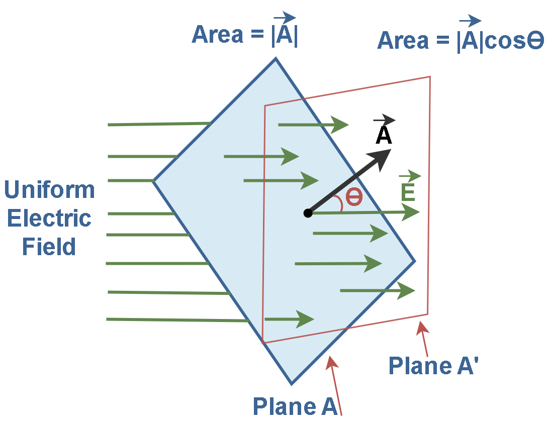 - \(\mathrm{\theta}\) = angle between \(\mathrm{\vec{E}}\) and \(\mathrm{\vec{A}}\)