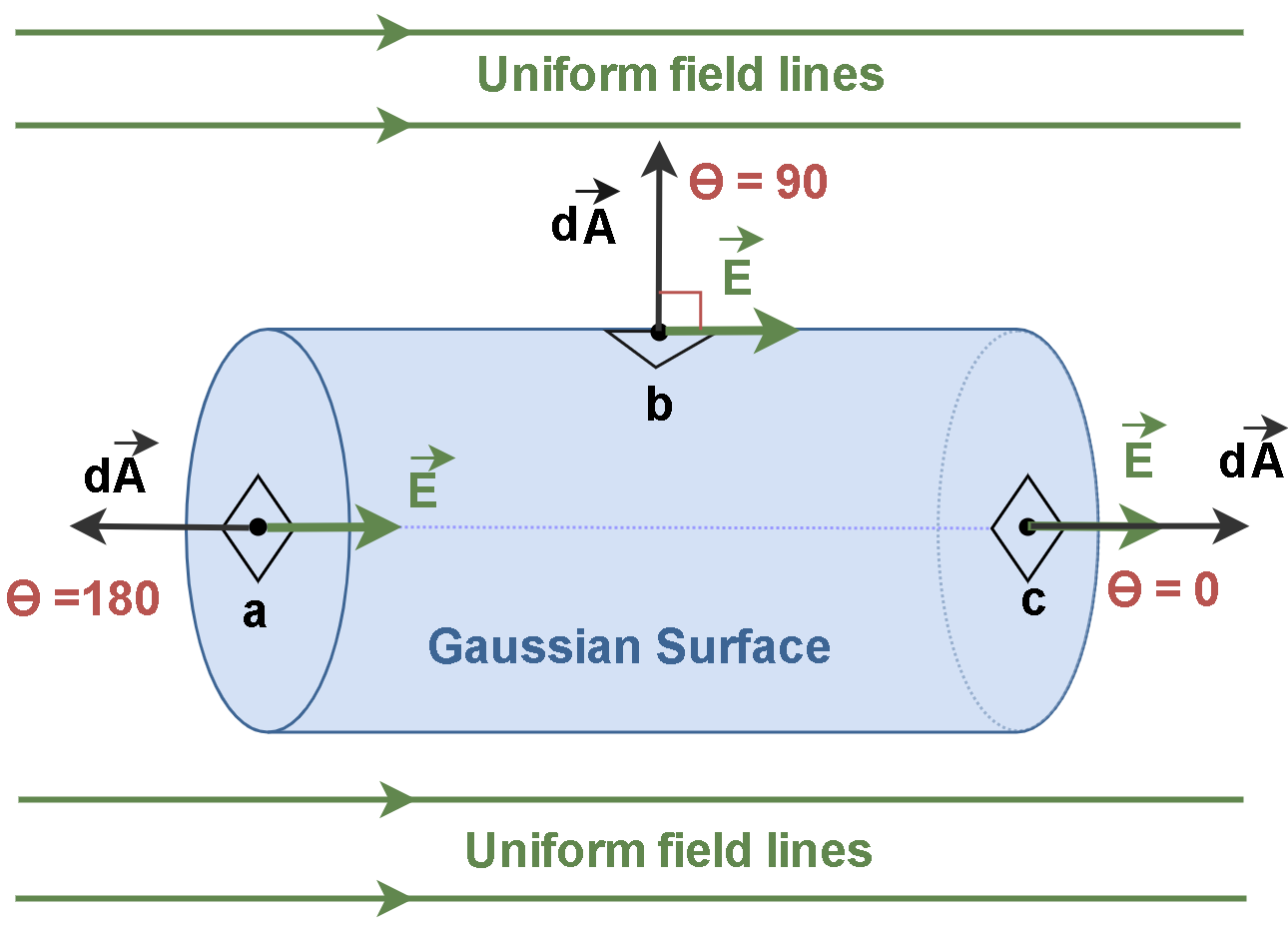 - \(\mathrm{d\vec{A}}\) = infinitesimal area element with direction normal to surface.