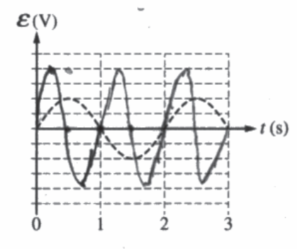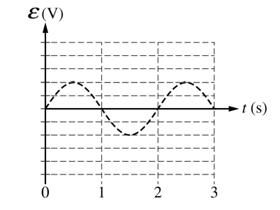 (f) On the graph below, draw a curve to indicate the new induced emf ε in the ring. The dashed curve shows the emf induced under the original conditions.