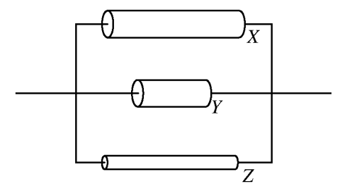 This option is correct. Current is proportional to the cross sectional area of the conductor and inversely proportional to length of the conductor. Conductors X and Y have the same cross sectional area and Y has clearly the smaller length. Conductors X and Z have the same length, but X has a larger cross sectional area. This leads to the conclusion that \(I _{y}\)>\(I_{x}\)> \(I_{z}\) .
