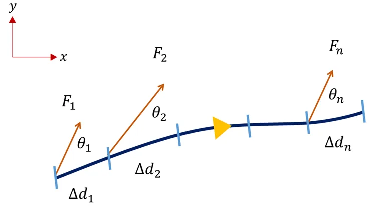 - \( \mathrm{F_{i\parallel}} \): component of the \( i^{th} \) force parallel to displacement
