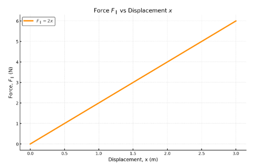 Conceptual Note: The force increases with displacement, so more work is done as the particle moves farther. This illustrates how integration accounts for the variable nature of force along a path.