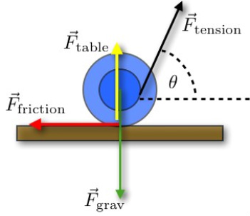 Step 2: However, the tension force \( \mathrm{T} \) on the wheel causes a net horizontal acceleration of its center of mass, so \( \mathrm{\sum \vec{F} \neq 0} \). Therefore, it is not in translational equilibrium.
