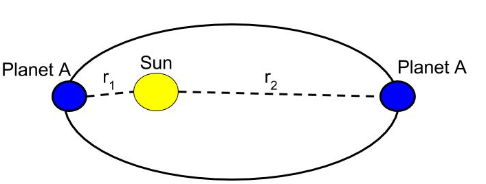 In an elliptical orbit, the satellite’s distance from the central object changes continuously. Consequently, its kinetic and gravitational potential energies vary, but the total mechanical energy and angular momentum remain constant.