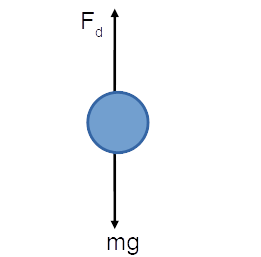 Equation of motion: \( \mathrm{m \dfrac{dv}{dt} = mg – k v} \).