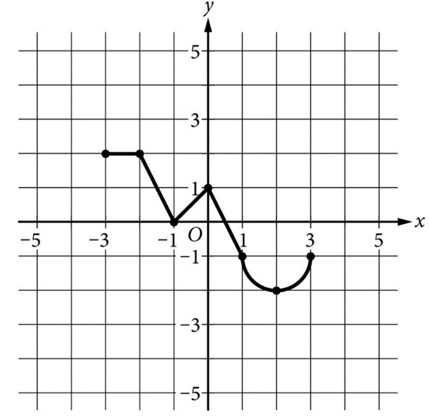 Thus the entire original graph (line segments and semicircle) moves 1 unit left and 2 units down.