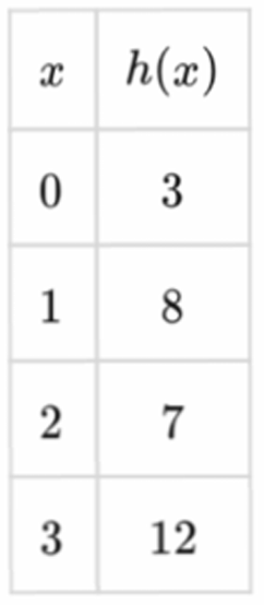 Which of the following is a table of values for the function $h$ given by $h(x) = f(x – 1) + 3$?