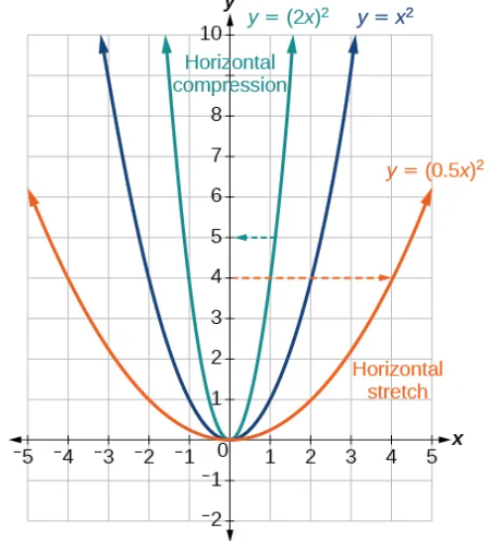 • If \( \mathrm{0 < |b| < 1} \), the graph is horizontally stretched