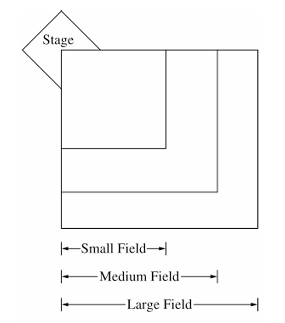 Capacity likely depends on the area of the square field. If side length = \( s \), then area = \( s^2 \), and crowd capacity is proportional to area (assuming constant density).