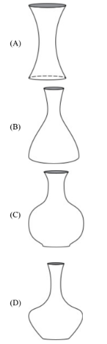 So correct vase shape: bottom part where cross-section narrows upward (giving concave up depth–time), then cylindrical section (giving linear depth–time = steep steady increase).