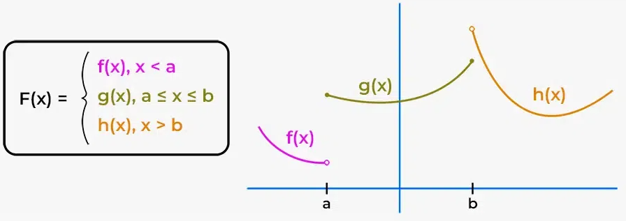 \( \mathrm{ \displaystyle f(x) = \begin{cases} f_1(x), & x_1 \le x < x_2 \\ f_2(x), & x_2 \le x < x_3 \\ \vdots \end{cases} } \)