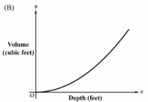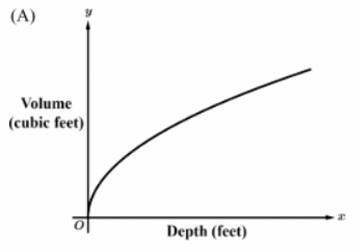 Graphs (C) and (D) are incorrect because volume must increase as depth increases.