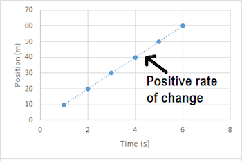 A rate of change is positive when an increase or decrease in one quantity causes the other quantity to increase or decrease in the same direction.