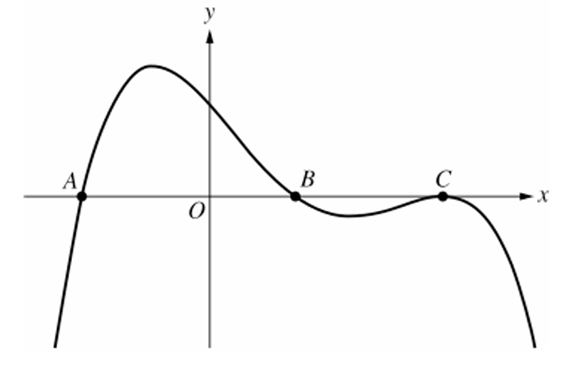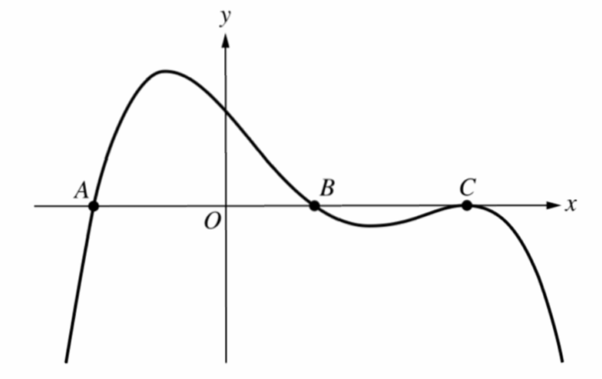 - Tangent Real Root: The graph touches the \( x \)-axis and turns around at a negative value. This indicates a root with an even multiplicity, so the minimum is 2.