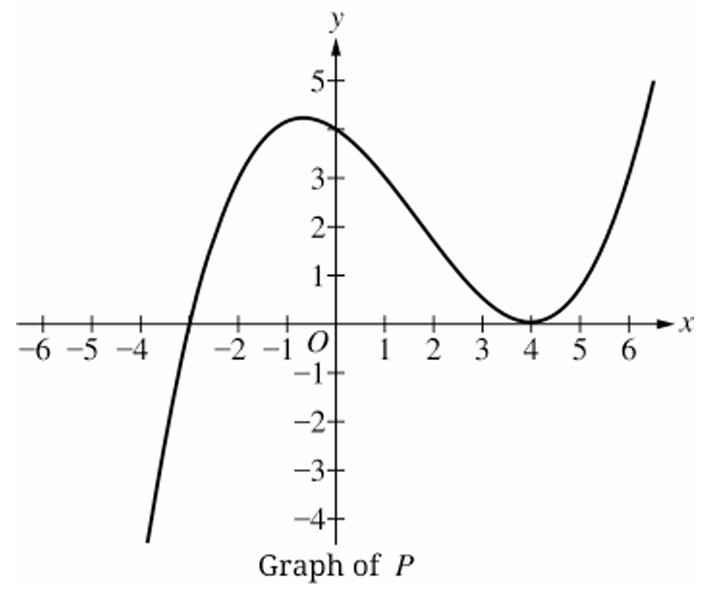 \( P(0) = \frac{(0-4)^2(0+3)}{12} = \frac{16 \cdot 3}{12} = 4 \). This matches the graph perfectly.