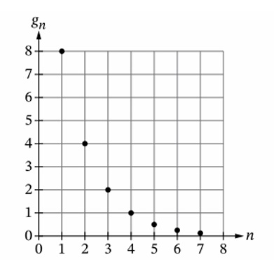 From the graph, likely \( g_1 = 8 \), \( g_2 = 4 \), so common ratio \( r = \frac{4}{8} = \frac{1}{2} \).
