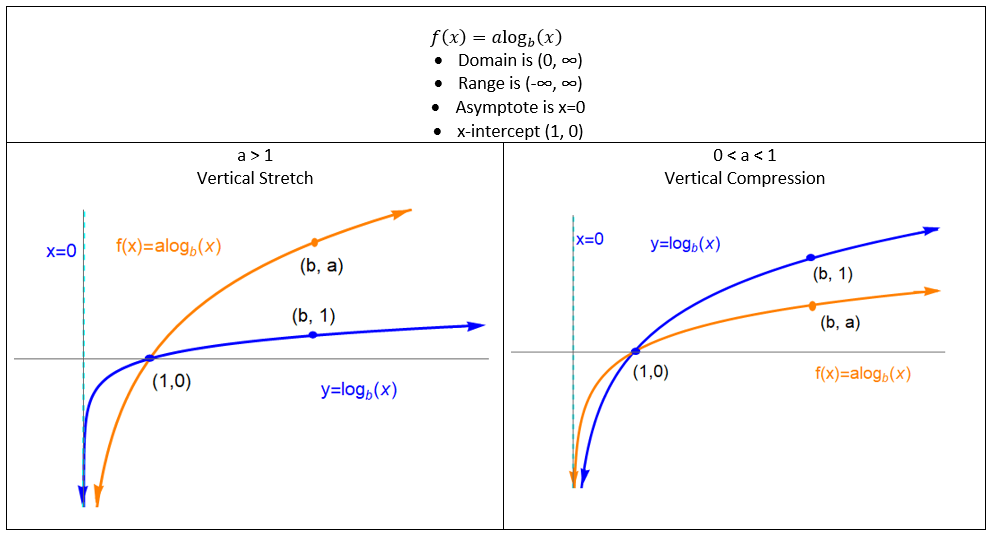 \( \mathrm{ \displaystyle f(x)=a\log_b x } \)