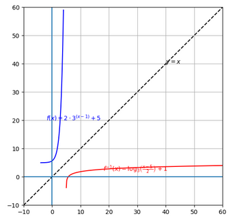 \( \mathrm{ \displaystyle f^{-1}(x)=3^{(x-1)/2}+4 } \)