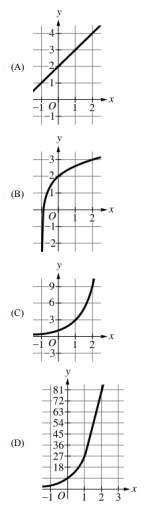 This is an exponential function with base 3 and initial value 9 when \(x = 0\). Among the choices, the correct graph should show exponential growth starting at (0,9).
