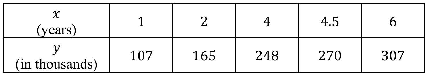 | \(x\) (years) | 1.5 | 2 | 2.5 | 3 | 4 | 6 |
