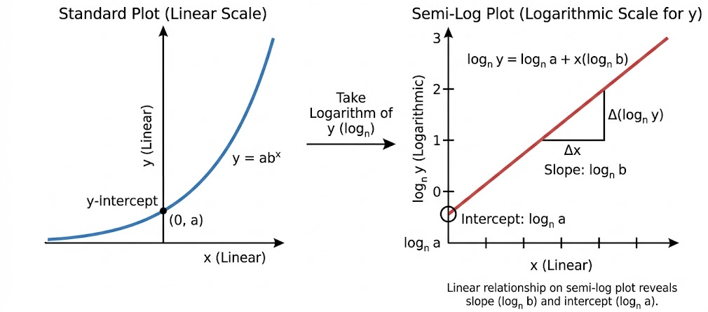 Thus, exponential growth or decay in the original model corresponds to a constant slope in the semi-log representation.