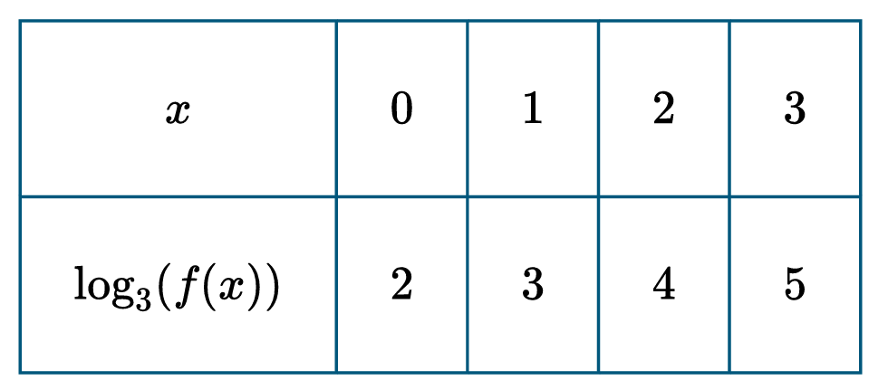 From the table, the linear relationship is $\log_{3}(f(x)) = x + 2$.