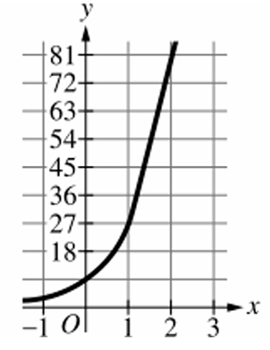 The graph must be exponential and pass through points $(0, 9)$ and $(1, 27)$.