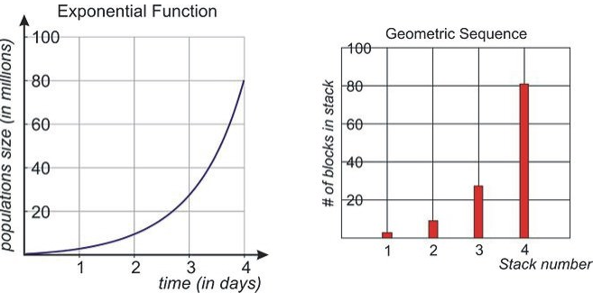 Exponential functions and geometric sequences are closely related because both are built from an initial value multiplied repeatedly by a constant proportion.