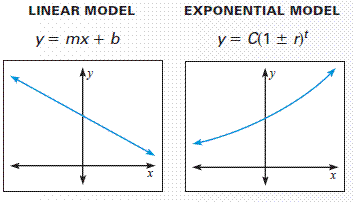Thus, linear functions model constant additive change, while exponential functions model constant proportional change.