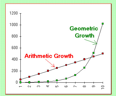 where \( \mathrm{a} \) is the initial value and \( \mathrm{b} \) is the constant growth or decay factor.