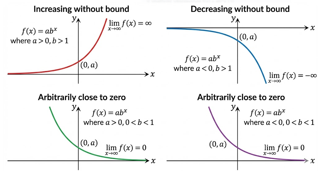 \( \mathrm{ \displaystyle \lim_{x \to \pm\infty} ab^x = \infty } \)