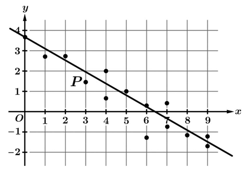 Locate data point $P$ on the graph at the $x$-coordinate of $3$.