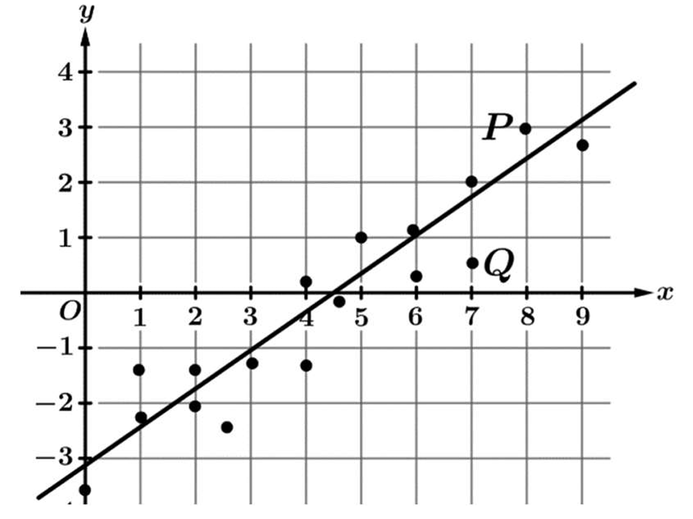 Calculate the residual: $1.5 – 2 = -0.5$.