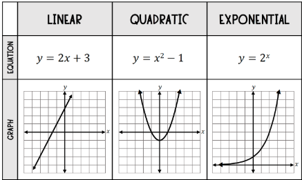 When two variables in a data set are related, the relationship can often be modeled using a linear, quadratic, or exponential function.