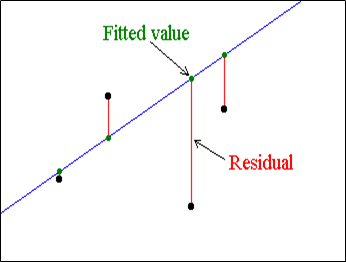 \( \mathrm{ \displaystyle \text{Residual} = \text{Actual value} – \text{Predicted value} } \)