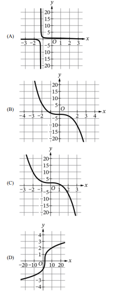 The inverse should thus have large \( x \)-values for small \( y \) changes, resembling the shape in option (D) where the axes appear swapped.